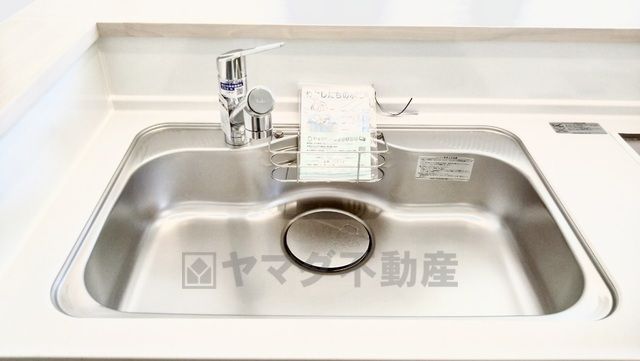 大きなお鍋も楽々洗える幅の広いシンクです^^ステンレスシンクなので簡単にお掃除できますよ。洗剤やスポンジもすっきりできる収納付き。