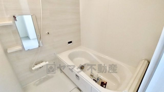 1日の疲れを癒すくつろぎのバスルーム。足を伸ばしてもゆったりと入れるサイズです。お子様と一緒にお風呂に入っても狭くないですね^^