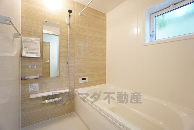 1日の疲れを癒すくつろぎのバスルーム。足を伸ばしてもゆったりと入れるサイズです。お子様と一緒にお風呂に入っても狭くないですね^^