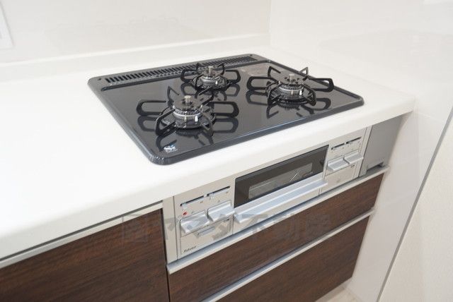 3種類の料理が同時に調理できる、3口ガスコンロ。忙しい夕食の支度時間が短縮できて効率よくお料理が楽しめます。