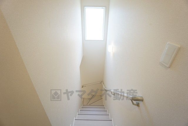 日中でも暗くなりがちな階段には、小窓を配置し採光も考えられたつくり^^手摺付きなので安全に上り下りできますね^^