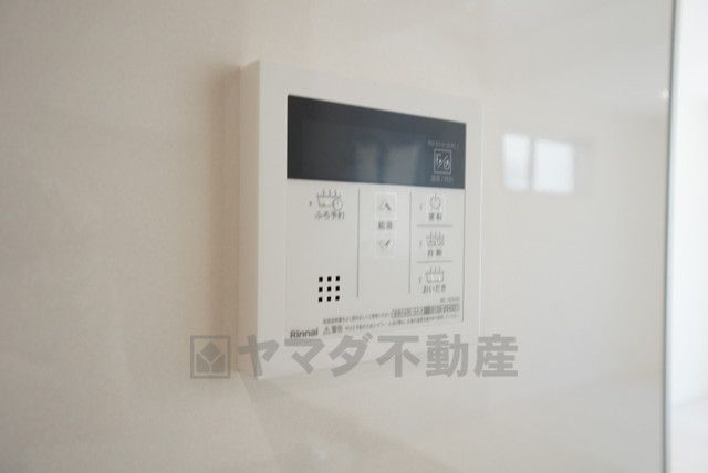 キッチン横からお湯張り、追い炊き、足し湯がボタン一つで楽々操作できる給湯機リモコンです^^忙しい夕飯の準備の時間帯に重宝しますね。