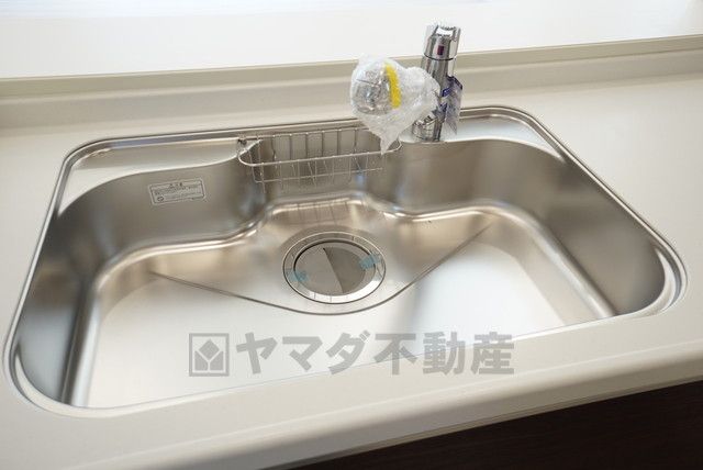 大きなお鍋も楽々洗える幅の広いシンクです^^ステンレスシンクなので簡単にお掃除できますよ。洗剤やスポンジもすっきりできる収納付き。