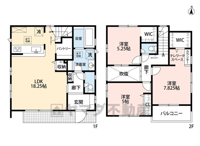 LDK18.2畳(1F)、洋7.8畳(2F)、洋5.2畳(2F)、洋5畳(2F) |
