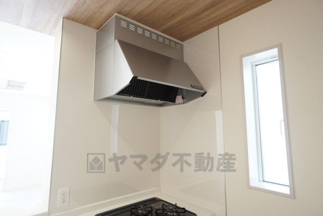 コンロ上には換気扇完備^^すぐ横に小窓が設けられているので、換気扇と合わせてWで換気できます^^