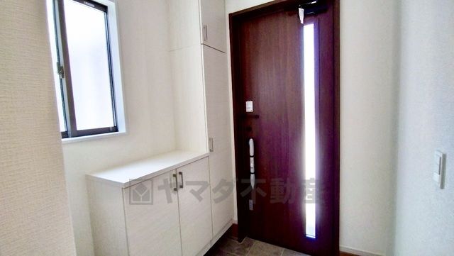 採光も考えられた明るい玄関です。たっぷり収納できるシューズボックス付きなので、家族全員の靴がきれいに整頓できます。