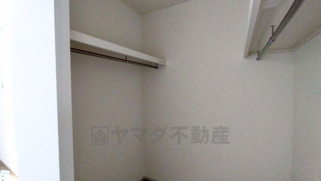 ウォークインクローゼット付き^^ハンガーパイプ下にボックスを置いて、枕棚を活用して、たっぷりと収納できそうです^^