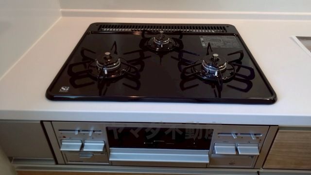 3種類の料理が同時に調理できる、3口ガスコンロ。忙しい夕食の支度時間が短縮できて効率よくお料理が楽しめます。