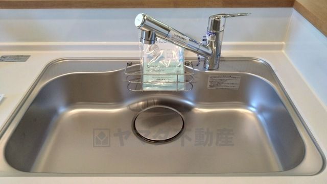 大きなお鍋も楽々洗える幅の広いシンクです^^ステンレスシンクなので簡単にお掃除できますよ。洗剤やスポンジもすっきりできる収納付き。