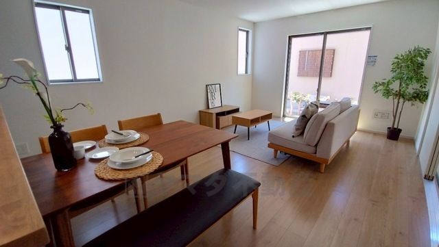大きな掃き出し窓のあるリビングは、陽光あふれる明るい空間です。ゆったりと寛げる憩いの場となりそうです。