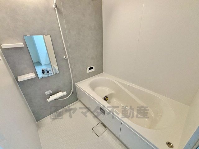 1日の疲れを癒すくつろぎのバスルーム。足を伸ばしてもゆったりと入れるサイズです。お子様と一緒にお風呂に入っても狭くないですね^^