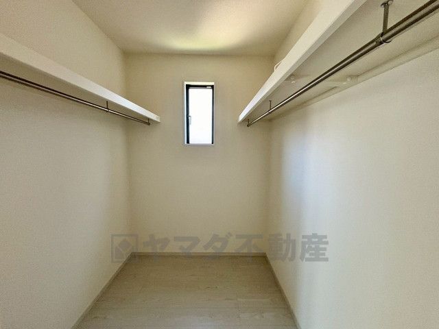 ウォークインクローゼット付き^^ハンガーパイプ下にボックスを置いて、枕棚を活用して、たっぷりと収納できそうです^^