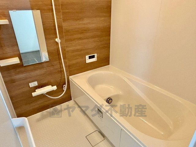 1日の疲れを癒すくつろぎのバスルーム。足を伸ばしてもゆったりと入れるサイズです。お子様と一緒にお風呂に入っても狭くないですね^^