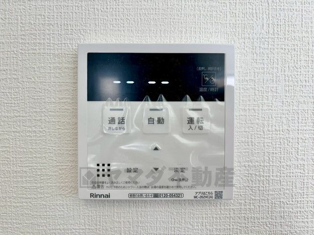 キッチン横からお湯張り、追い炊き、足し湯がボタン一つで楽々操作できる給湯機リモコンです^^忙しい夕飯の準備の時間帯に重宝しますね。