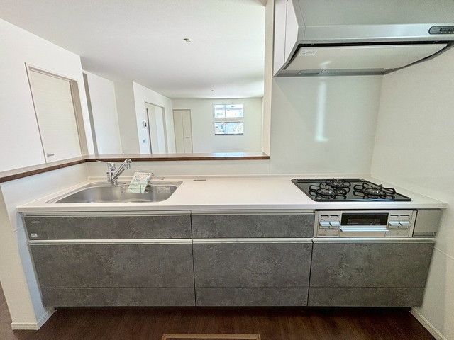 収納も、作業スペースも広々と設けられた使いやすいシステムキッチンです^^カウンターキッチンなので、ご家族と会話をしながら楽しくお料理ができます^^
