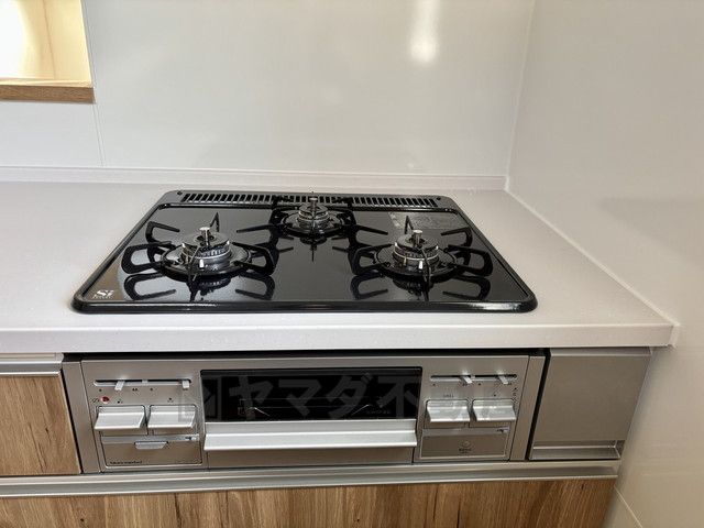3種類の料理が同時に調理できる、3口ガスコンロ。忙しい夕食の支度時間が短縮できて効率よくお料理が楽しめます。
