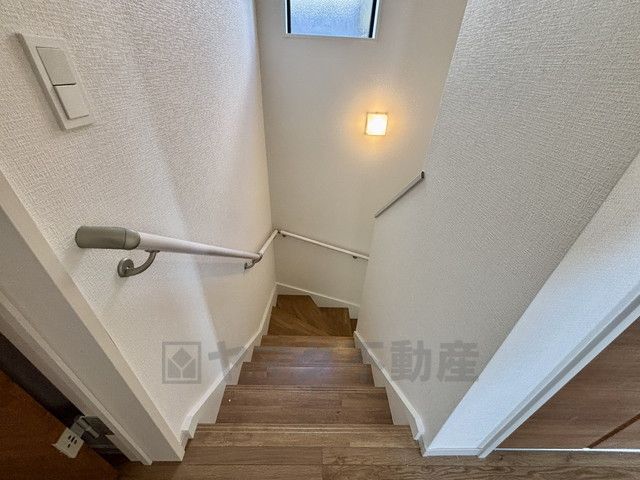 日中でも暗くなりがちな階段には、小窓を配置し採光も考えられたつくり^^手摺付きなので安全に上り下りできますね^^