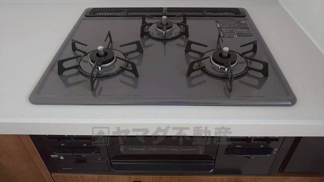 3種類の料理が同時に調理できる、3口ガスコンロ。忙しい夕食の支度時間が短縮できて効率よくお料理が楽しめます。