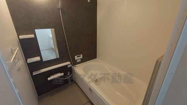 1日の疲れを癒すくつろぎのバスルーム。足を伸ばしてもゆったりと入れるサイズです。お子様と一緒にお風呂に入っても狭くないですね^^