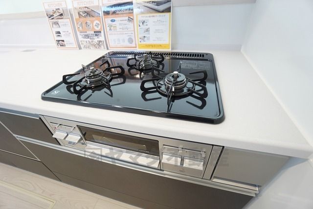 3種類の料理が同時に調理できる、3口ガスコンロ。忙しい夕食の支度時間が短縮できて効率よくお料理が楽しめます。