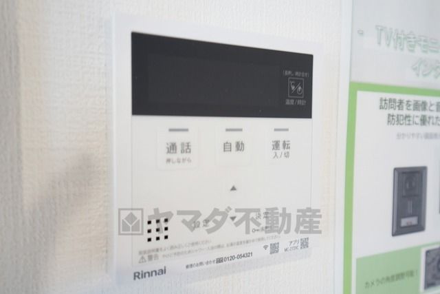 キッチン横からお湯張り、追い炊き、足し湯がボタン一つで楽々操作できる給湯機リモコンです^^忙しい夕飯の準備の時間帯に重宝しますね。