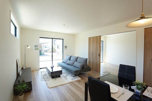 大きな掃き出し窓のあるリビングは、陽光あふれる明るい空間です。ゆったりと寛げる憩いの場となりそうです。