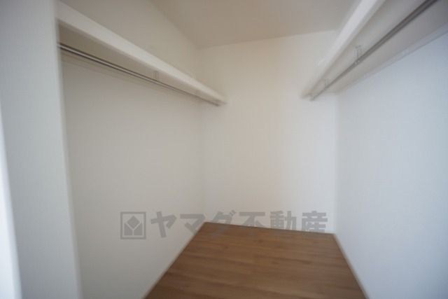 ウォークインクローゼット付き^^ハンガーパイプ下にボックスを置いて、枕棚を活用して、たっぷりと収納できそうです^^
