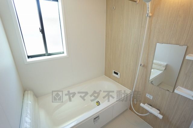 1日の疲れを癒すくつろぎのバスルーム。足を伸ばしてもゆったりと入れるサイズです。お子様と一緒にお風呂に入っても狭くないですね^^
