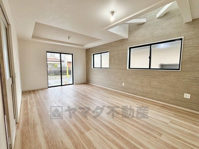 大きな掃き出し窓のあるリビングは、陽光あふれる明るい空間です。ゆったりと寛げる憩いの場となりそうです。