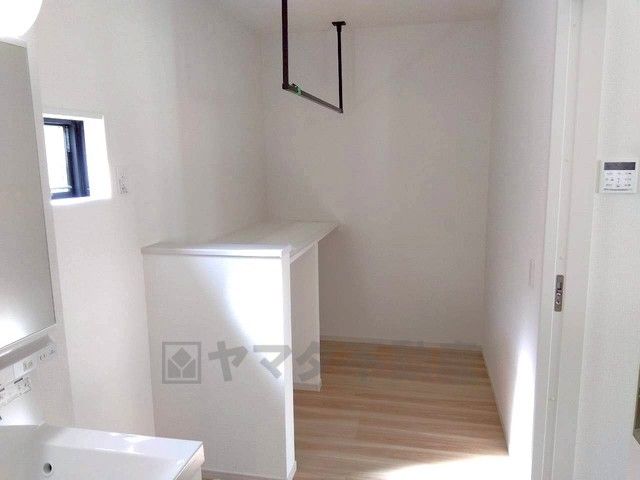 洗面台横にはカウンター付きランドリールームで家事効率UP 毎日の家事がもっと心地よく。