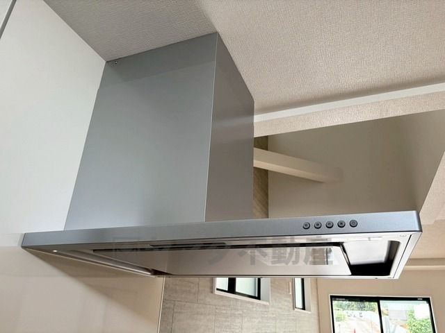 コンロ上には換気扇完備^^すぐ横に小窓が設けられているので、換気扇と合わせてWで換気できます^^