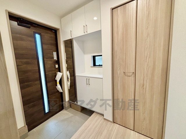 玄関にはシューズボックスとは別に収納が設けられています。姿見ミラーつきなので、靴を履いた状態で全身をチェックできますね^^
