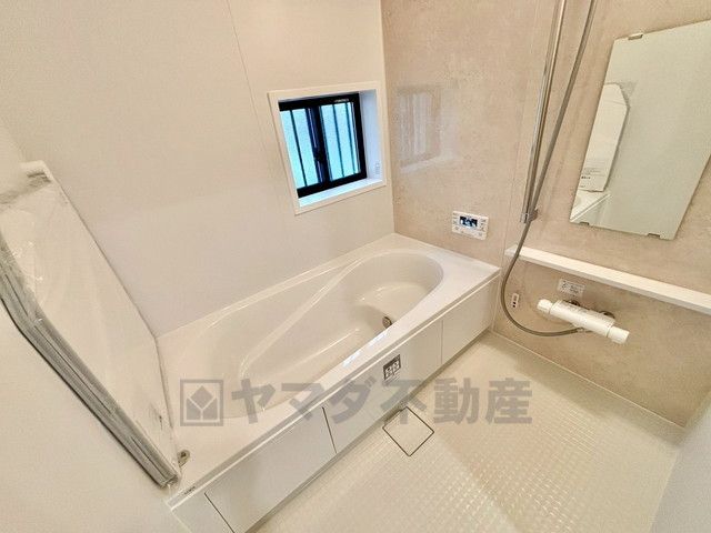 1日の疲れを癒すくつろぎのバスルーム。足を伸ばしてもゆったりと入れるサイズです。お子様と一緒にお風呂に入っても狭くないですね^^