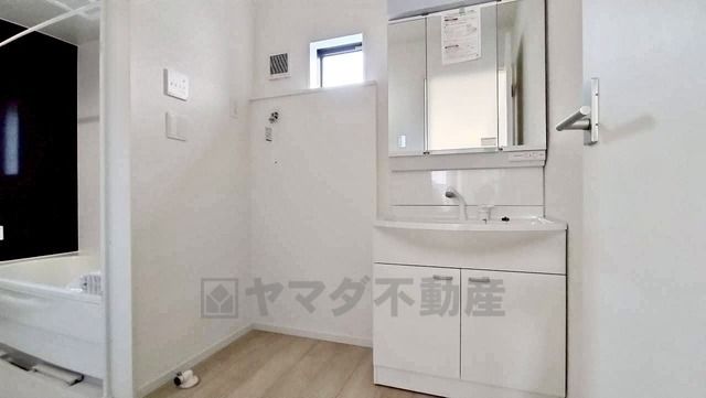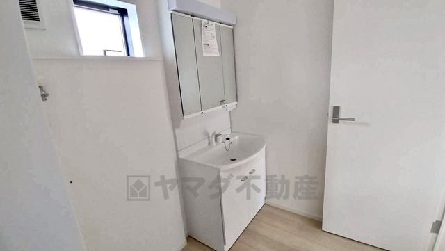 三面鏡にハンドシャワー付きで使いやすい洗面台です^^鏡裏と洗面ボウル下に収納付きの洗面台なので、整理整頓ができスッキリと使えます^^