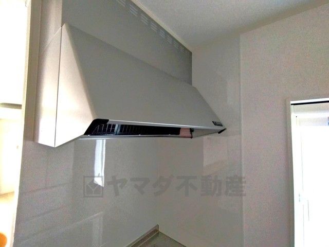コンロ上には換気扇完備^^すぐ横に小窓が設けられているので、換気扇と合わせてWで換気できます^^