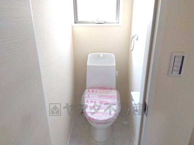 同仕様写真。温水洗浄機付トイレです。節水機能もあるので、安心して使えますね。もちろん、1階2階の2ヶ所にトイレがあるので、忙しい朝にもゆとりができますね。