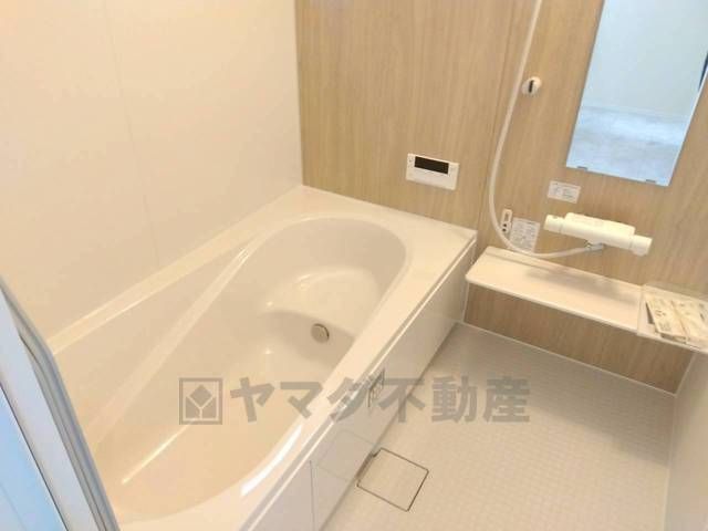 同仕様写真。1日の疲れを癒すくつろぎのバスルーム。足を伸ばしてもゆったりと入れるサイズです。お子様と一緒にお風呂に入っても狭くないですね^^