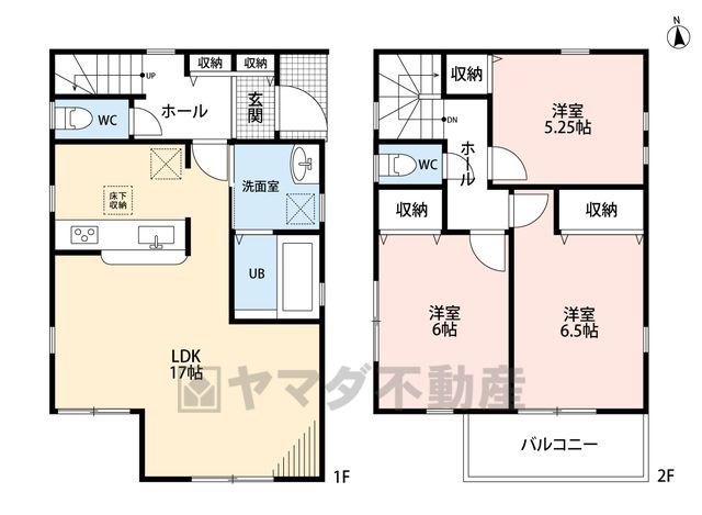 LDK17畳(1F)、洋6.5畳(2F)、洋6畳(2F)、洋5.2畳(2F) |