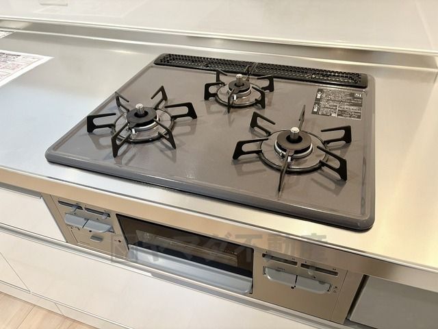 同時にたくさんの料理が調理できる3口コンロ。長時間熱を通しておきたい煮込み料理を作りながら、炒め物など同時進行で進められます。