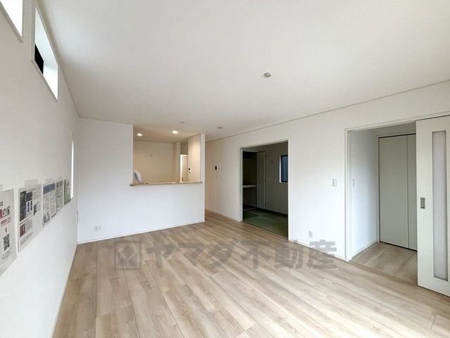 大きな窓のあるリビングは、陽光あふれる明るい空間です。居心地良く、ご家族皆がゆったり寛げる憩いの空間となりそうです。