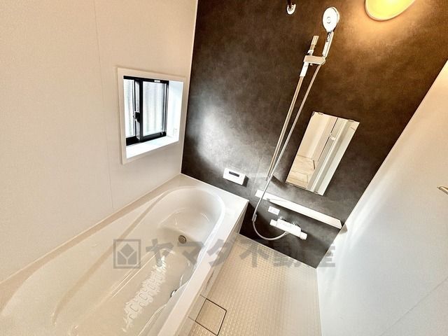 1日の疲れを癒すくつろぎのバスルーム。足を伸ばしてもゆったりと入れるサイズです。お子様と一緒にお風呂に入っても狭くないですね^^