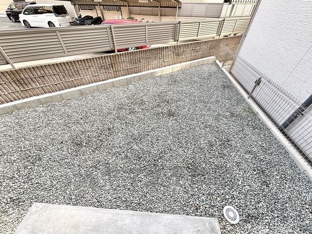 南面の陽当たりスペース。小さなガーデンや物干しにも。防草対策済みのすっきりとした庭先です。