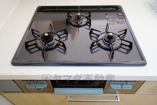 同仕様写真。現況と異なる場合は現況を優先します。3種類の料理が同時に調理できる、3口ガスコンロ。忙しい夕食の支度時間が短縮できて効率よくお料理が楽しめます。
