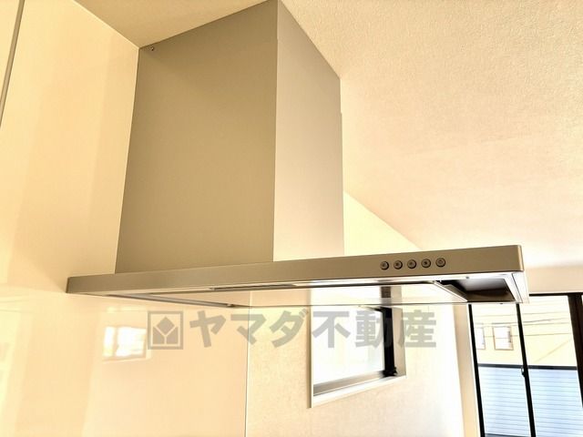 コンロ上には換気扇完備^^すぐ横に小窓が設けられているので、換気扇と合わせてWで換気できます^^