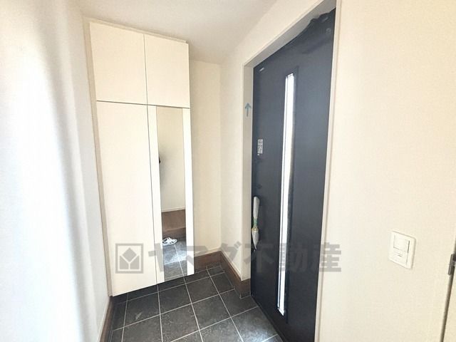 玄関扉から光の差し込む明るい玄関です。広々としたシューズインクローゼットを完備。家族全員の靴がきれいに収納できます^^