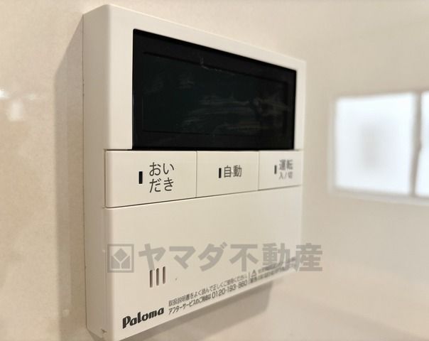 キッチン横からお湯張り、追い炊き、足し湯がボタン一つで楽々操作できる給湯機リモコンです^^忙しい夕飯の準備の時間帯に重宝しますね。