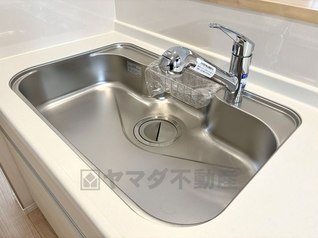 色も形もキレイなシンクは、広さも確保しているので、大きめの鍋も簡単に洗えます。