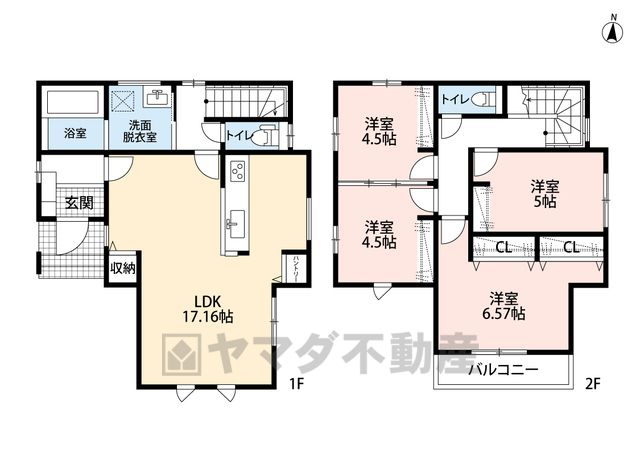 LDK17.1畳(1F)、洋4.5畳(2F)、洋5畳(2F)、洋6.5畳(2F) |