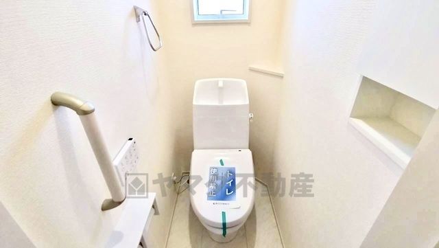 ウォシュレット付きトイレです。1階2階の2ヶ所にトイレがあるので、忙しい朝にもゆとりができますね^^ 温水洗浄便座リモコン付き。