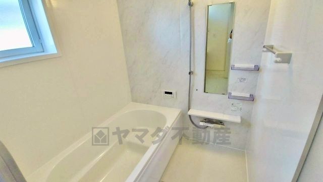 1日の疲れを癒すくつろぎのバスルーム。足を伸ばしてもゆったりと入れるサイズです。お子様と一緒にお風呂に入っても狭くないですね^^